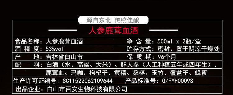 高档礼盒装人参鹿茸血酒长白山枸杞滋补养生白酒东北特产送礼品